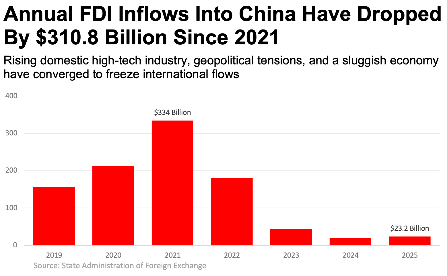 While the U.S. - Chinese trade relationship has been defined by a surprising resilience, the fall in foreign direct investment (FDI) into China in 2023-2025 cannot be described as anything but epochal. From all sources and on all fronts.