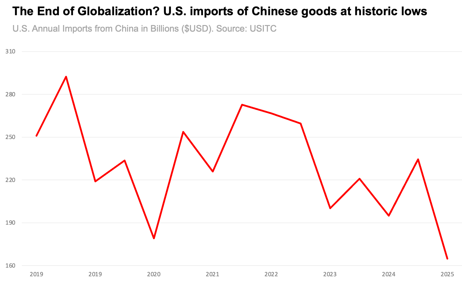 In June alone, America still imported $18.9 billion in goods directly from China. Even months into the trade war, the U.S. is likely to import over $200 billion in goods from China by year end. Forgetting transshipment or shifted supply chains through intermediary states like Vietnam for a second, the U.S. and China still trade bilaterally in the hundreds of billions of dollars a year.